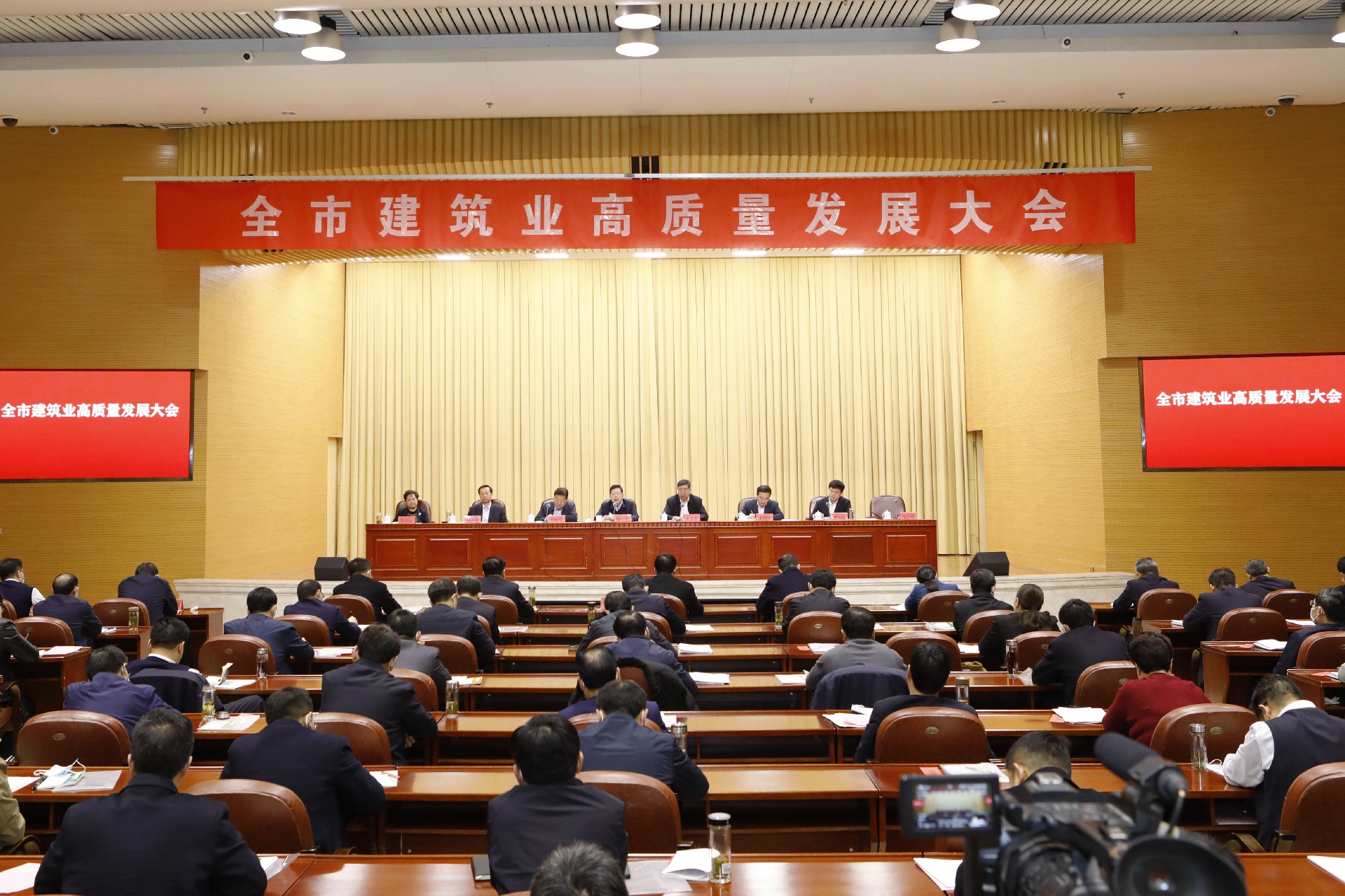 12月12日上午,枣庄市建筑业高质量发展大会在市政大厦召开。省住房和城乡建设厅厅长王玉志,枣庄市委书记、市人大常委会主任陈平出席会议并讲话,枣庄市委常委、常务副市长孙起生主持会议。市委常委、秘书长朱国伟,市人大常委会副主任刘志才,副市长李守江,市政协副主席艾百灵,枣庄学院副院长李目海,枣庄高新区党工委书记、管委会主任王广部出席会议。